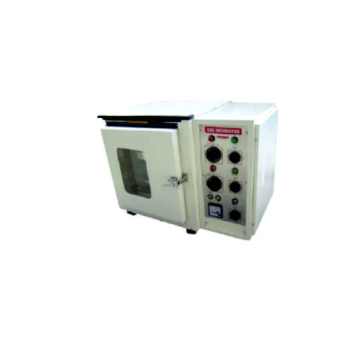 Double walled inside chamber made of stainless steel. Outer body made of mild steel painted in epoxy powder coated. The Door made of mild steel epoxy powder coated with glass window for inner view. The gap between outer and inner Wall is fitted high grade glass wool to minimize thermal loss. Temperature range from Ambient + 5*C to 80*C by a precision thermostat with Accuracy + 1*C. To work on 220/230-volt AC Supply.