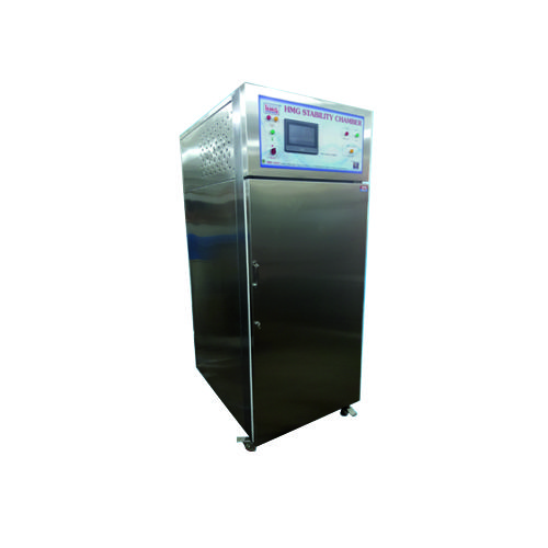 Creating ideal conditions for Industrial component / product research and Bio technical specification test. Most accurate and reliable chamber for long term high temperature and RH testing. Temp. range 10 c to 60 c with an accuracy +_ 0.5 c. Relative humidity range 35%RH to 95% RH with an accuracy +- 3% RH. A positive vertical air circulation ensures temperature and RH uniformity. Digitally set, temperature and Humidity controller with direct digital read out in temperature and percentage RH Low pressure Boiler to generate steam for chamber humidification. Well balanced refrigeration system. Double walled construction inner chamber S. S. and outside of Mild steel beautifully powder coated. The chamber is provided with modular removable shelves made of S. S. for complete flexibility in use. A key lockable insulated door having positive door gasket seals doors perfectly. Control panel mounted on the top of the unit. It works on 230 volts A. C. only.