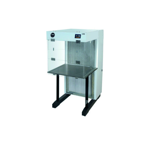 Laminar Air Flow (HORIZONTAL) made of thick ply board covered with white sunmica and epoxy painted inside. Workbench covered with 304 grade S.S. Sheet. Switches for blower, fluorescent light and UV Light.