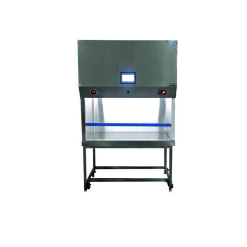 Made of 304 Grade hairline finish Stainless Steel. Workbench made of 304 grade stainless steel sheet. Touch Panel LCD Display, digital manometer, filter failure alarm, LED and UV light, motorized glass door, micro switch for UV, Gas Cock, and socket provided inside the chamber.
