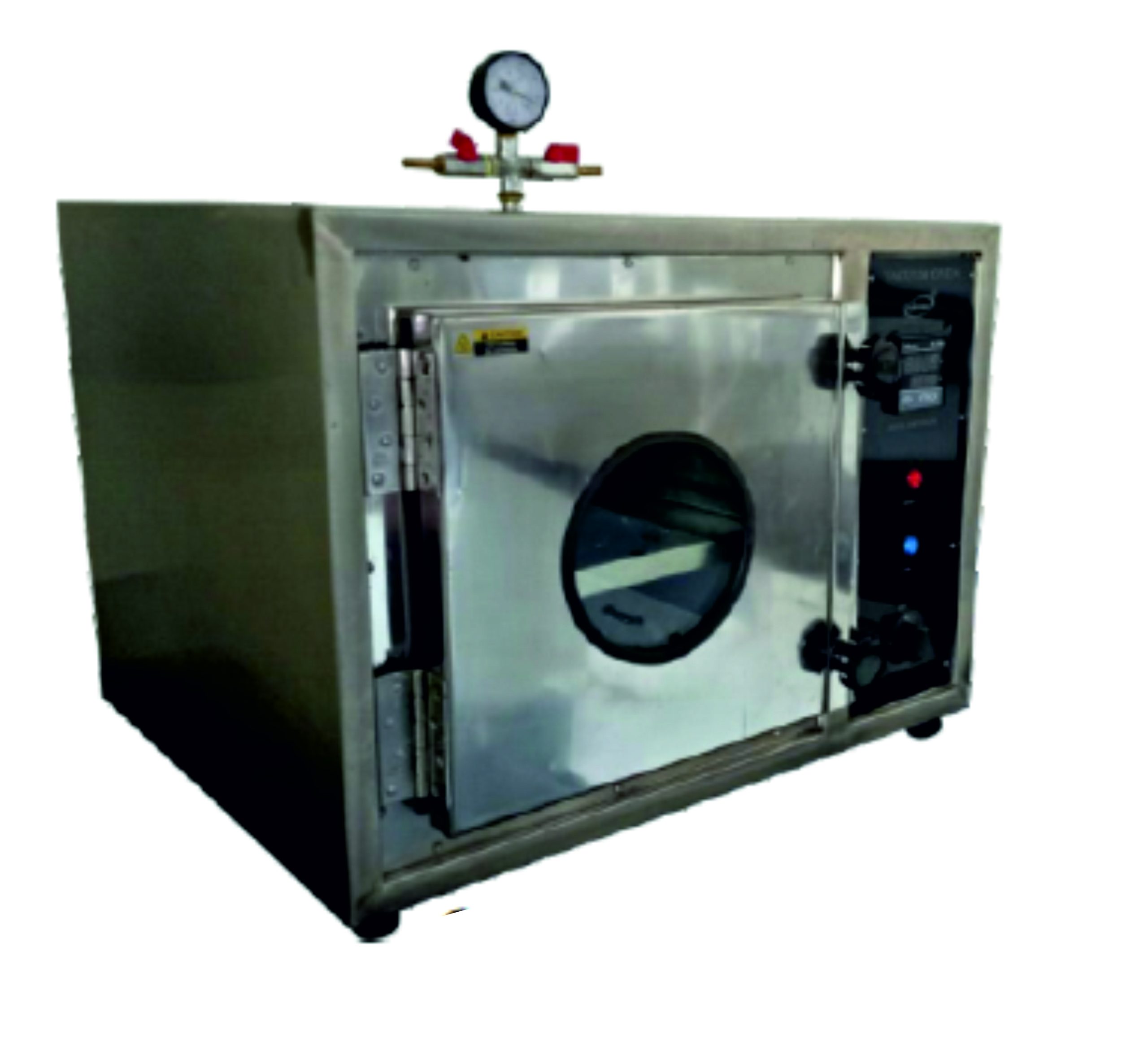 VACUUM OVEN (OV-VM Series – Digitally Controlled)Construction:Double-walled fabrication with the outer chamber made of heavy-duty mild steel and the inner chamber constructed from heavy-grade stainless steel.Finish:Exterior finished with stoving enamel paint or powder-coated paint for durability and corrosion resistance.Temperature Range:Ambient to 130°C ± 2°C, controlled by a hydraulic thermostat or digital temperature controller for precise temperature management.Vacuum Capability:Designed to withstand vacuum levels up to 760 mm Hg.Power Supply:Operates on 220V AC.Additional Features:Front see-through glass window for monitoring.Supplied without vacuum pump (optional accessory).